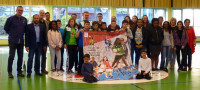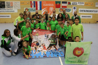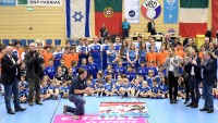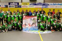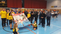 Remise vun de Bänner vun der "Ecole de Handball" un déi verschidde Veräiner duerch d'Responsabel vun der Federatioun