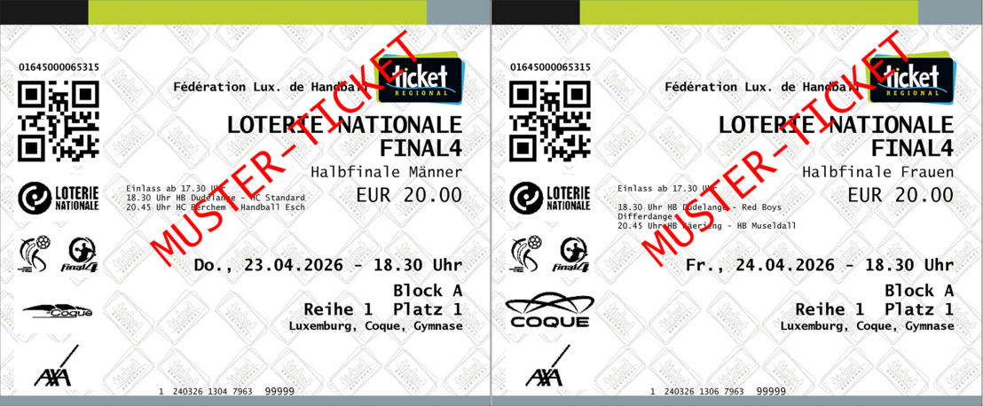 Fir d'Halleffinalle bei de Männer kënnt dir är Ticketen bei de Veräiner déi an der Halleffinall engagéiert sinn bestellen. Dir sëtzt am Block vun ärem Veräin, an dir ënnerstëtzt äre Veräin och finanziell.