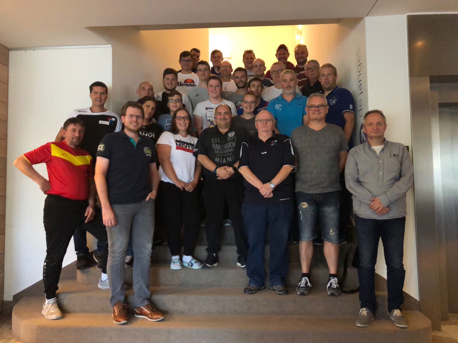 Am flotte Kader vum Domaine Thermal zu Munneref waren ons Arbitter dëse Weekend vum 1.&2. September fir ee Stage zesumme komm. Eigentlech goung et jo schonns Freides owes um INS mat den Reegel- an Laftester lass. Samschdes moies hunn si sech dunn zu Munneref am Parc Hotel getraff. Divers Couren iwwert d’Reegelen, dem Arbitrage am allgemengen, awer och Teambuildingsaktivitéite waren iwwert de ganze Weekend geplangt. Selbstvertändlech hunn d’Arbitter no den ustrengende theoretesche Couren och vun deem engen oder aneren Aufguss an der Sauna, dem Thermalschwemm an de Fitnessinstallatiounen vum Domaine Thermal profitéiert. Alles an allem ee léierräiche Weekend an engem ganz flotte Kader, dëst fir mat beschte Viraussetzungen di nei Saison unzegoen.