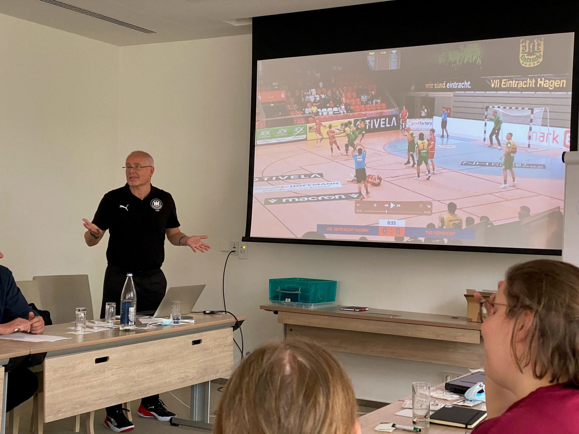 Dëse Weekend waren ons Arbitter, ënner anerem onsen A-Kader, fir hire mëttlerweil schonns traditionelle Summerstage, zu Munneref am Domaine Thermal. D’Kuere goufen dëst Joer vum Kay Holm, dem "Schiedsrichterlehrwart" vum DHB, gehalen. No zwee Deeg intensive Kuere wäerten si esou optimal virbereet an déi nei Saison starte kënnen.