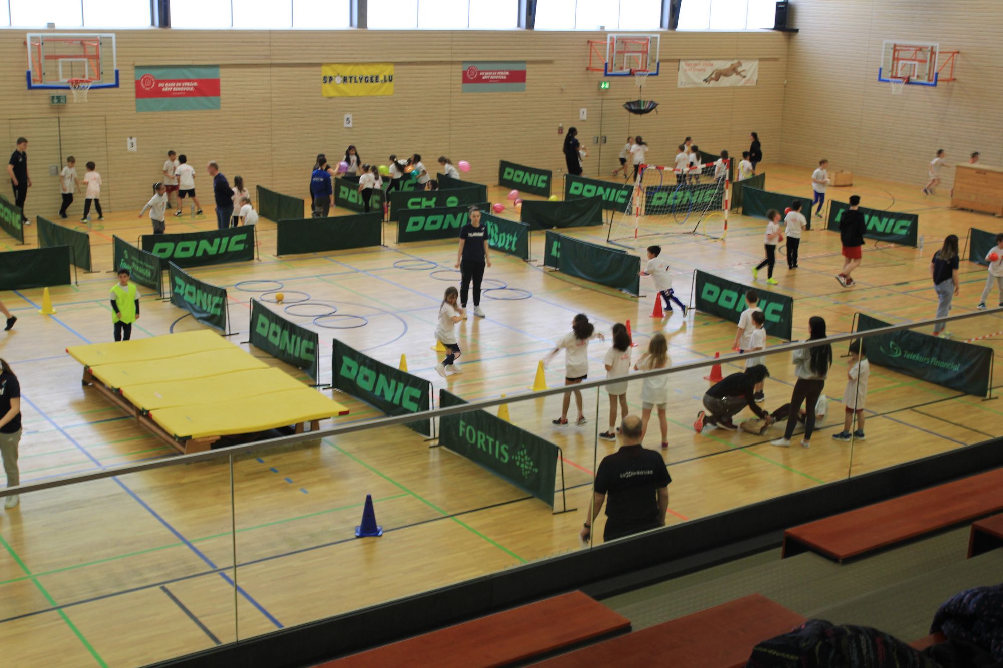 A 7 Atelier'n hunn d'Kanner hir sportlech Fäegkeete gewisen a sech gutt dru ginn. Sichtlech jiddereen deen dobäi war hat grousse Spaass, a mir hoffen, vill Kanner an eise Veräiner erëmzegesinn.