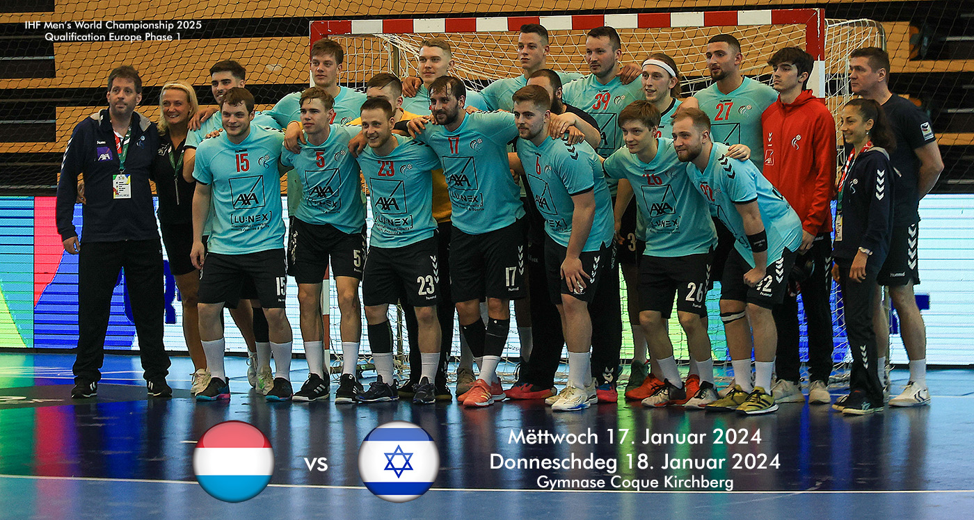 Dat huet d’FLH der europäescher Handball-Federatioun EHF an där israeelescher Federatioun haut matgedeelt. Déi zwou Partië sinn de 17. an den 18. Januar an der Coque.
