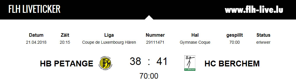 Mat 41 - 38 no Verlängerung géint den HB Péiteng gewënnt den HC Bierchem d'Loterie Nationale Coupe de Luxembourg 2018 bei den Hären.