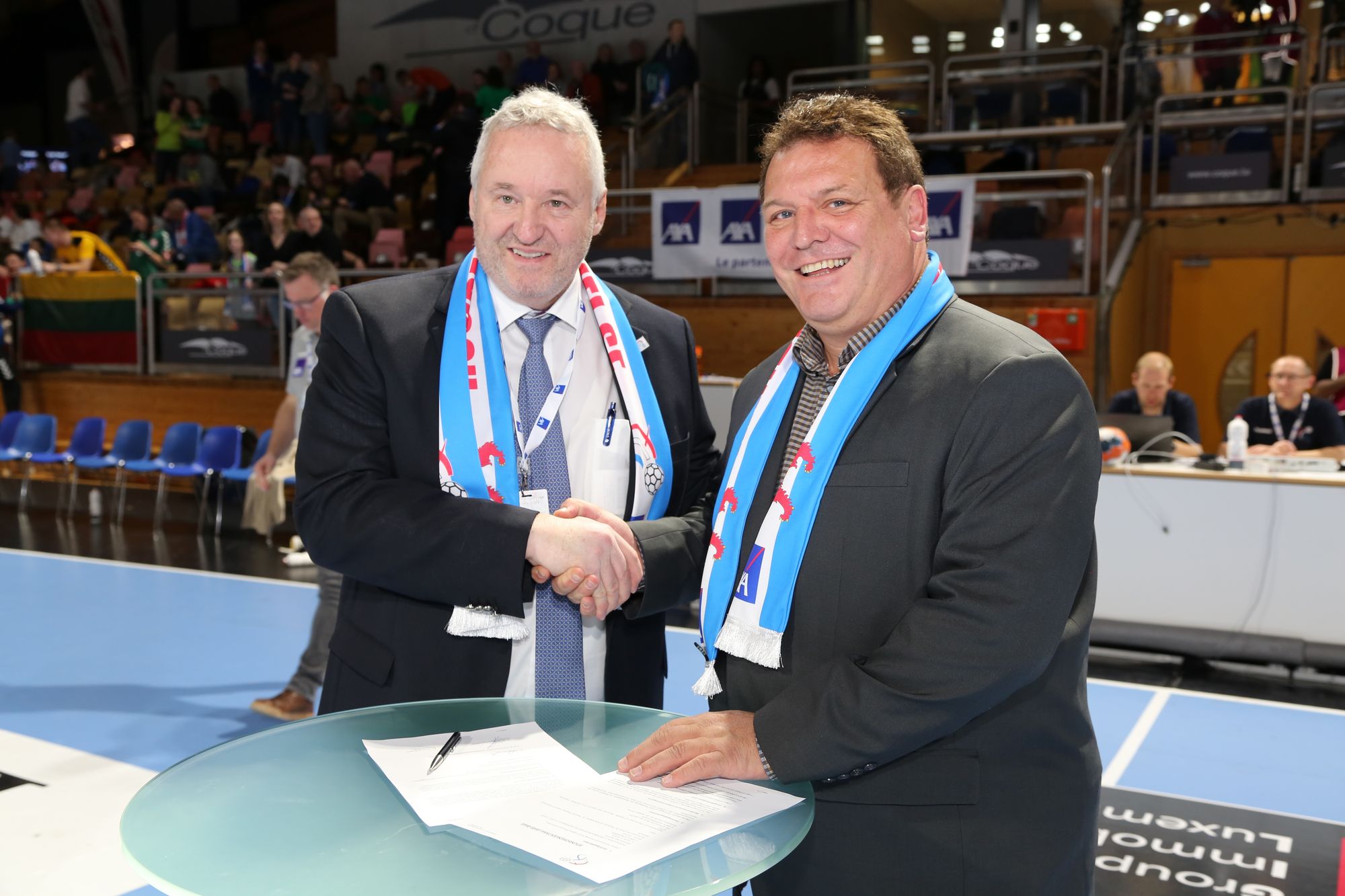Am néie Joer konnt sech d'Lëtzebuerger Handballfederatioun laangfristeg mat néie Partner zesummen doen. Des Kooperatioune goufen am Kader vun der WM Quali am Januar an der Coque virgestallt. Gläich dräi néi Sponsore konnten déi Verantwortlech vun der FLH dem grousse Public präsentéieren.
