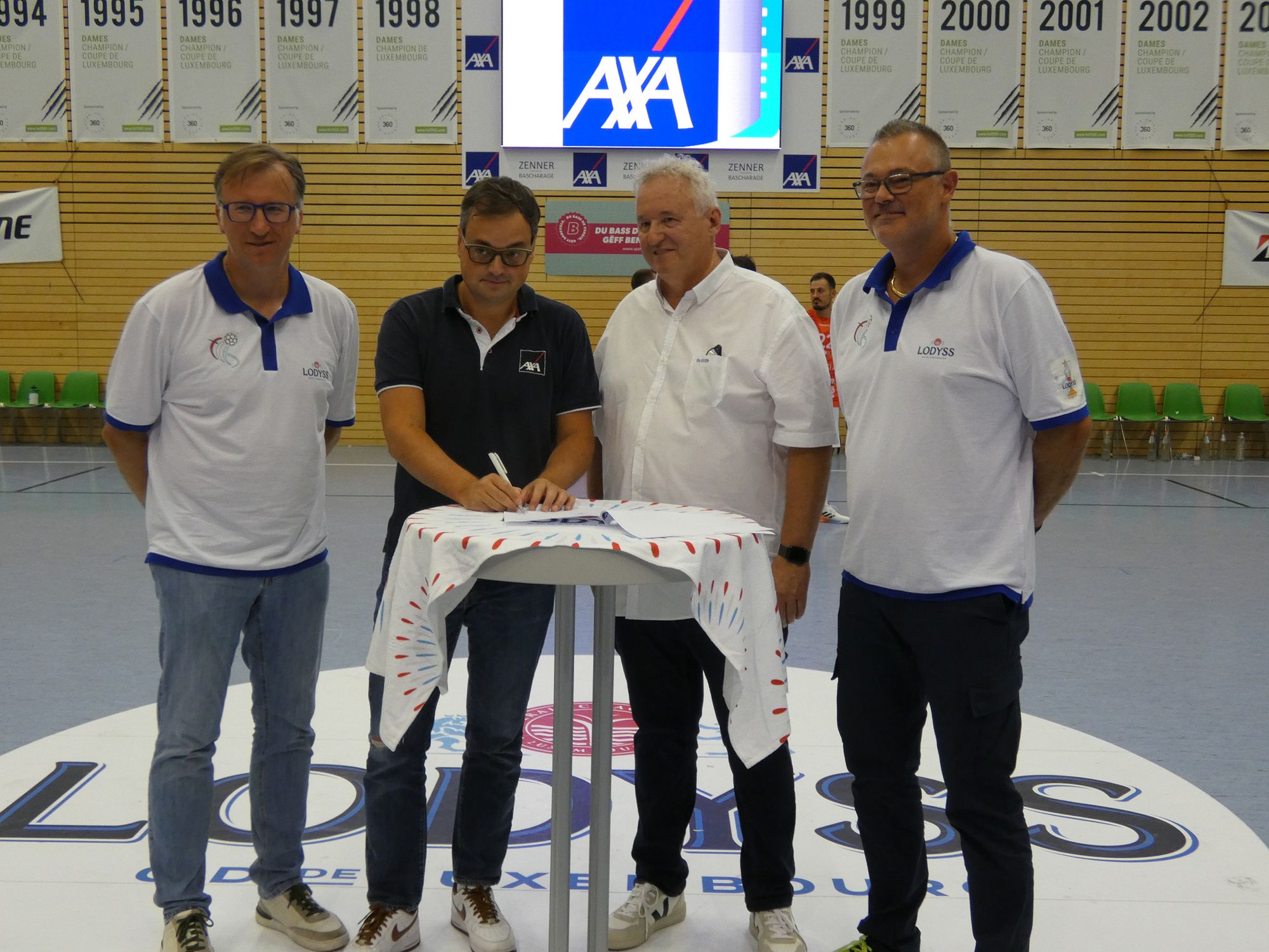 E Samschdeg huet eise President den Dr. Romain Schockmel zesumme mam Mathieu Lafond, Head of Marketing & Communication vun AXA Luxembourg, de neie Kontrakt bei Geleeënheet vum Lodyss Supercup am Käerjenger Dribbel ënnerschriwwen.