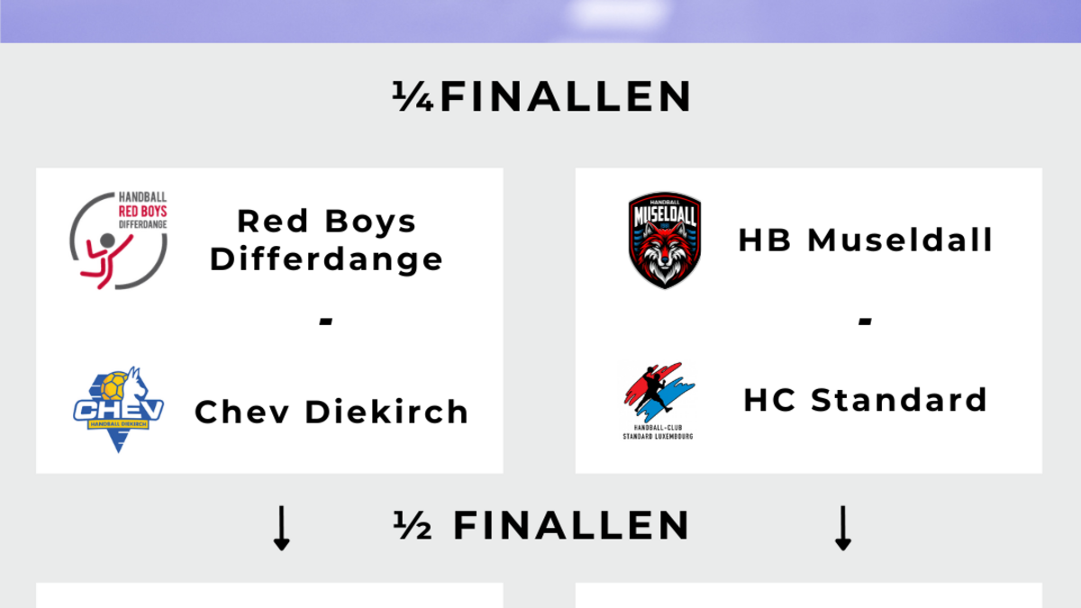 Ab de ¼ Finallen ginn all d’Matcher am Best-of-3 Modus gespillt. Steet et no 60 Minutten gläich, gëtt direkt am 7-Meter-Werfen de Gewënner ermëttelt.