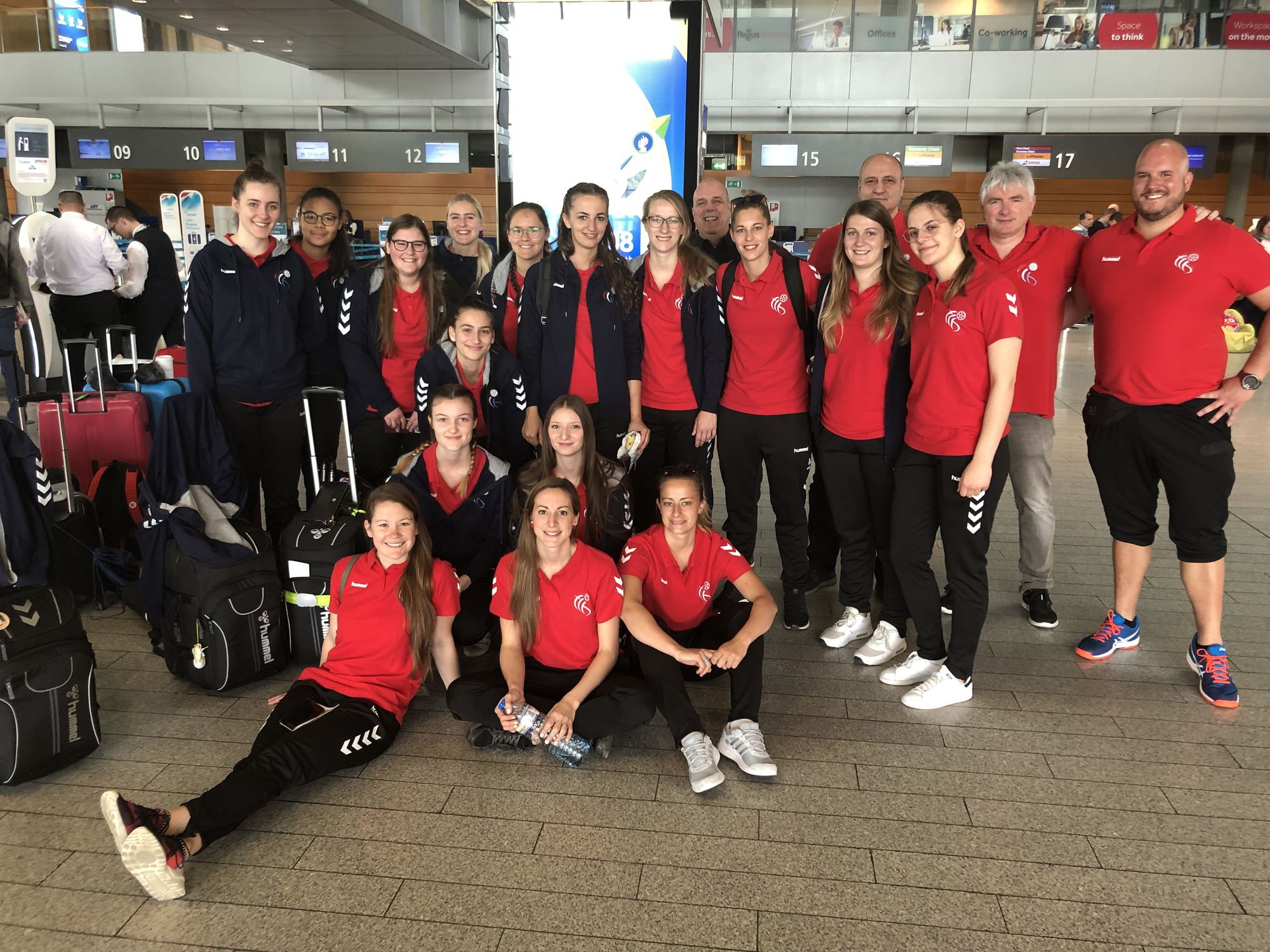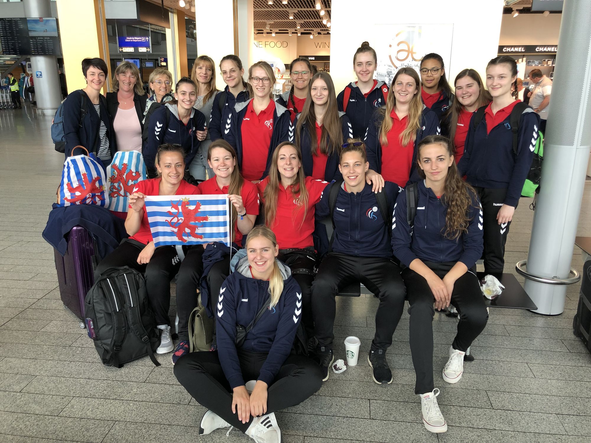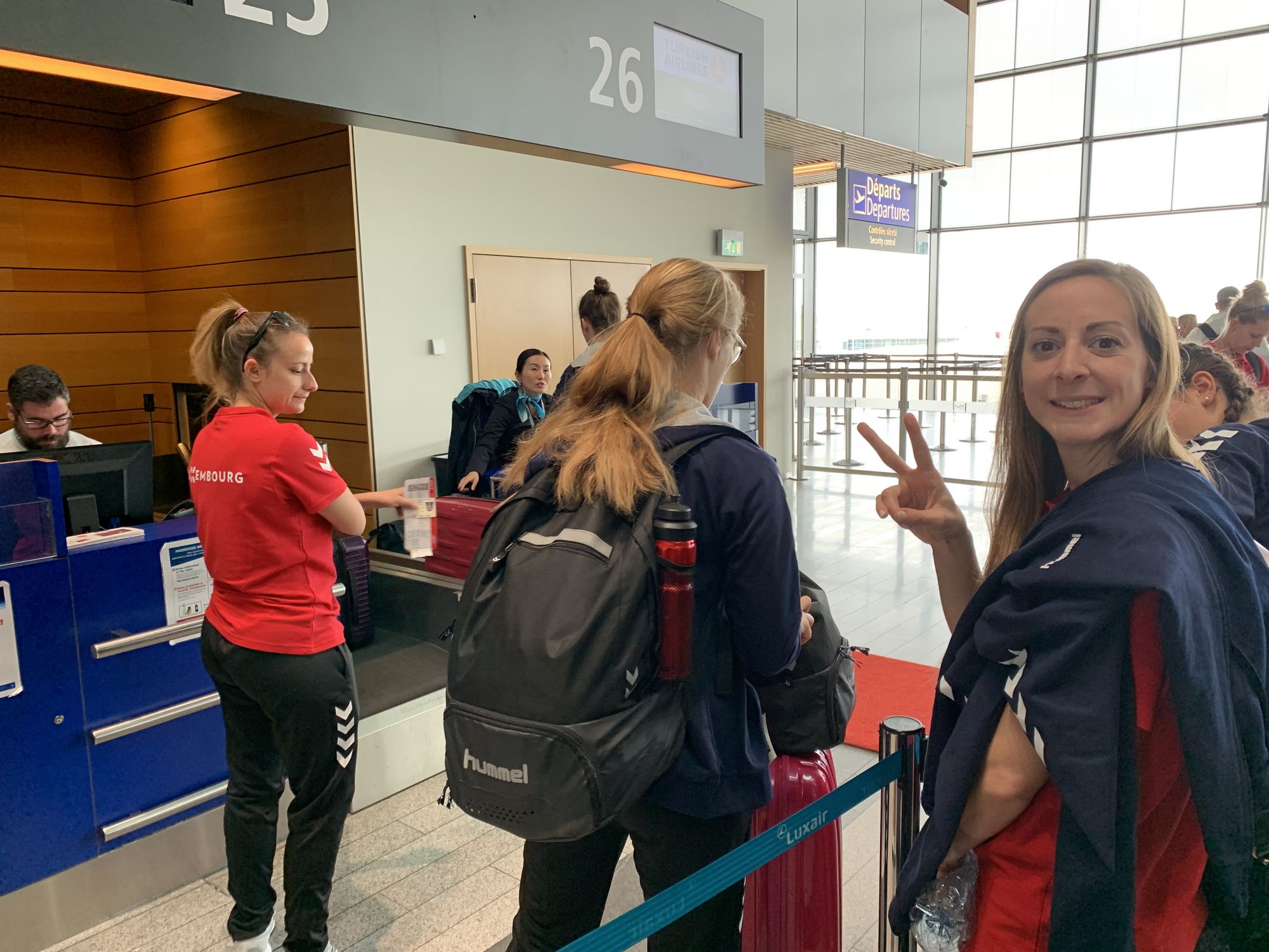 Haut an der Mëttesstonn huet eis Damme Nationalequippe um Findel agecheckt fir iwwer Istanbul op Thessaloniki ze fléien, fir da weider op Veria ze fueren (Arrivée géint 22:00 Auer).