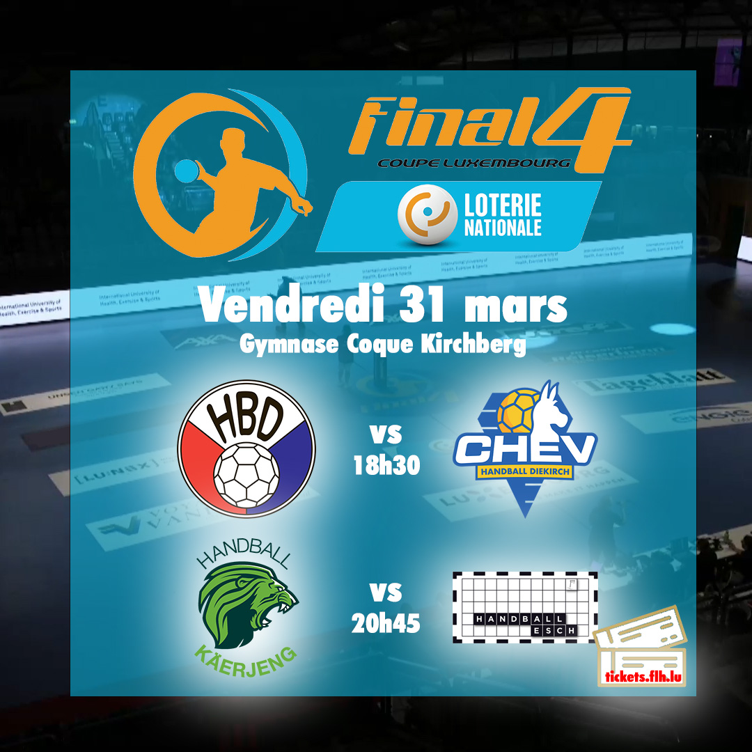 Ab e Freideg ass et nees esou wäit. Da ginn d'Gewënner vum Final4 Loterie Nationale Coupe de Luxembourg 2023 bei de Fraen am Gymnase vun der Coque ermëttelt.