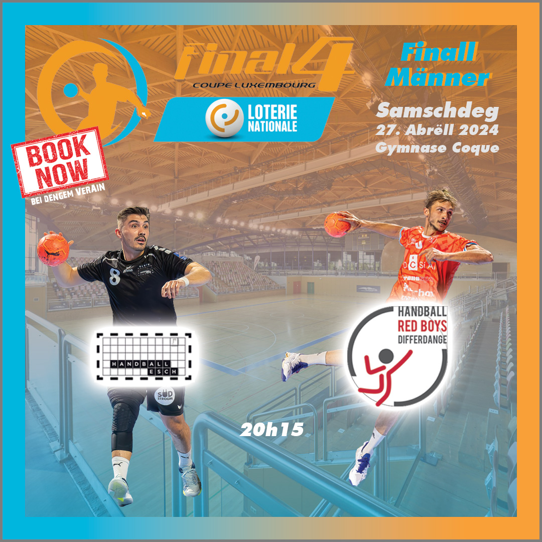 Fir d’Finall bei de Männer kënnt dir är Tickete bei deenen 2 Veräiner, déi an der Finall engagéiert sinn, bestellen.