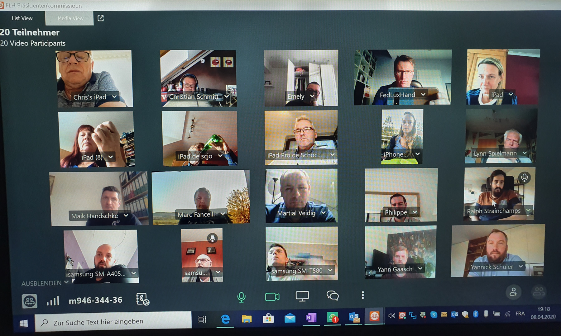 Den 8. Abrëll huet d'FLH sech an enger Videokonferenz u seng 15 Veräiner gewannt fir ze kucke wéi et weider geet.