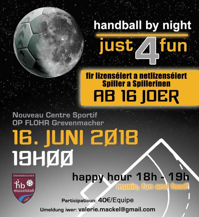 Den HB Museldall luet Iech häerzlech op hiren Handball by Night den 16. Juni 2018 an.