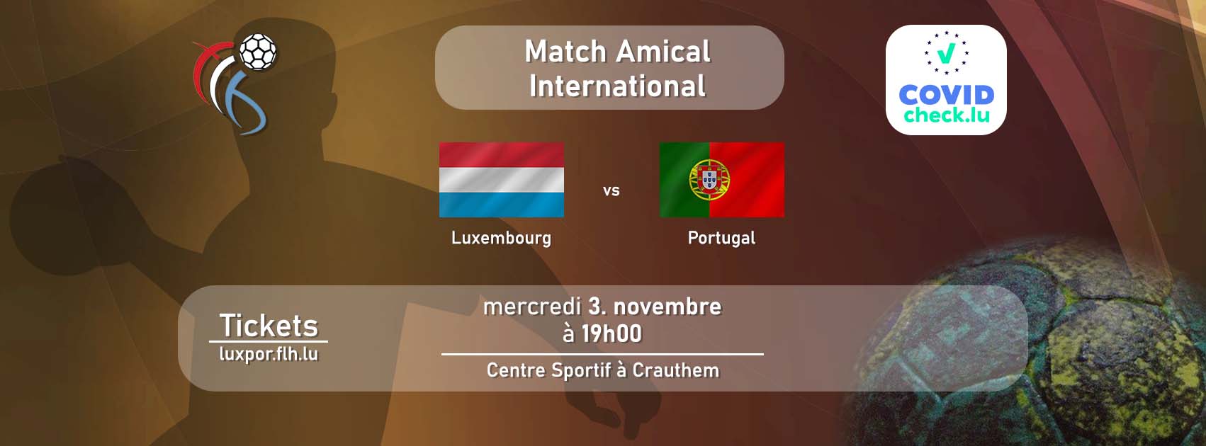 Eis Häre Nationalekipp spillt am Kader vu 75 Joer FLH, Mëttwochs den 3. November um 19:00 Auer e Frëndschaftslännermatch géint de Portugal zu Crauthem an der Sportshal