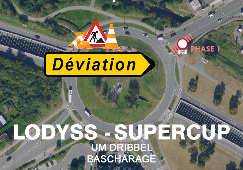 De Rond-point Biff ass de ganze Weekend gespaart, an et gëtt eng Deviatioun duerch Lénger (oder iwwert Suessem fueren, an do Deviatioun Käerjeng duerch d'ZA Zaemer, an d'Avenue de Luxembourg, an dann op den Dribbel aus Richtung Stad).