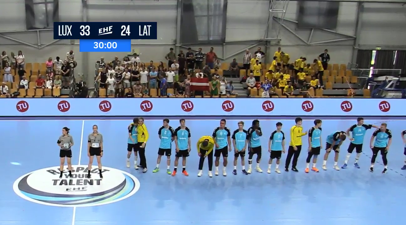 Eis Jonge wannen d'Finall fir 3. a 4. Plaz géint d'Heemekipp aus Lettland mat 33 - 24 (Paus 14 - 14)