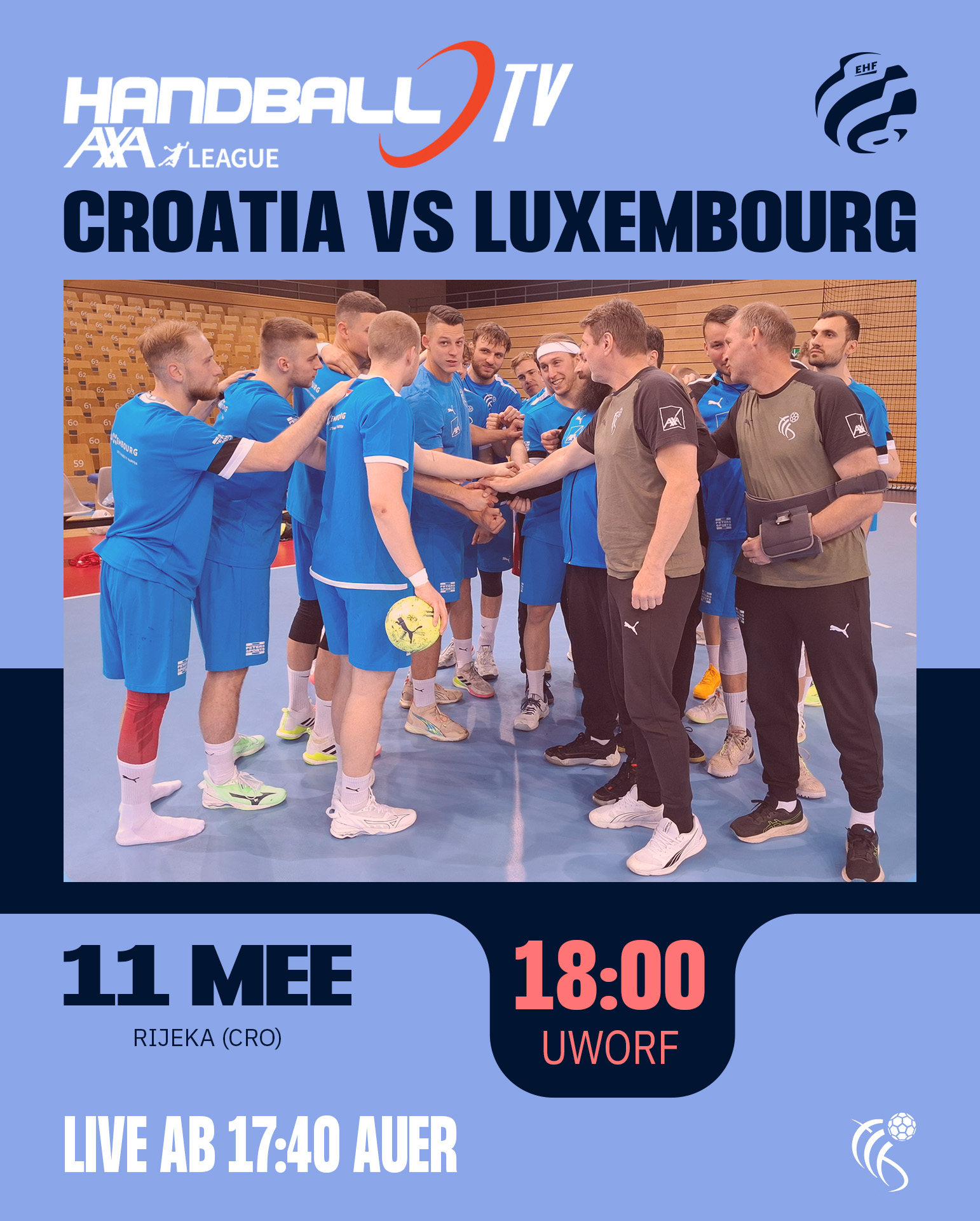 Muer Sonndeg ab 17:40 Auer op HandballTV, op ApartTv an och op RTL.lu (Uworf ass um 18:00 Auer)