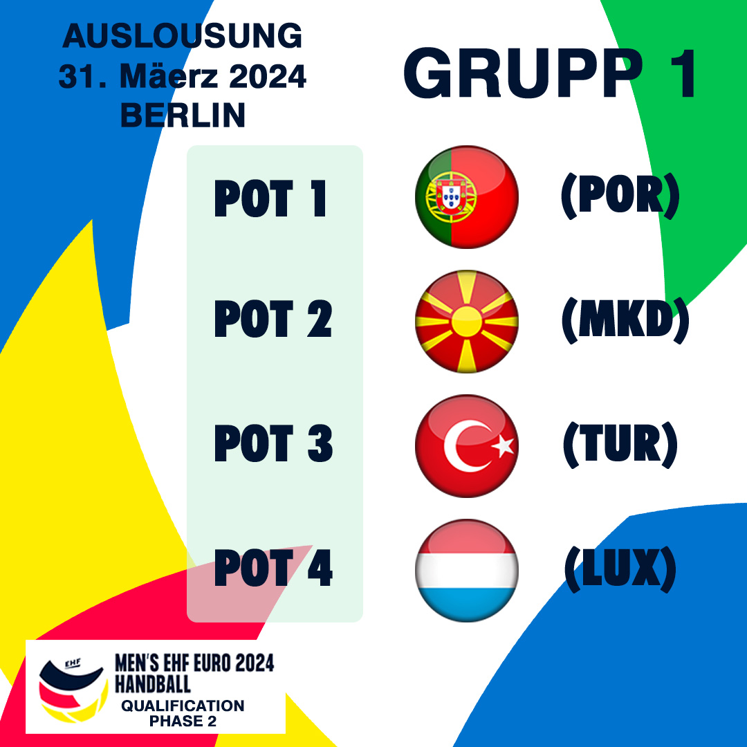 Resultat vun der Auslousung fir d'Qualifikatiouns Phase 2 fir d'Euro2024 an Däitschland.