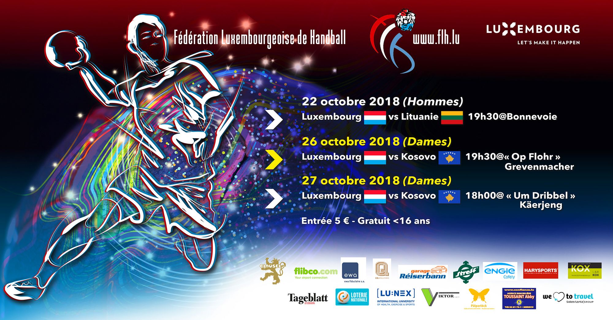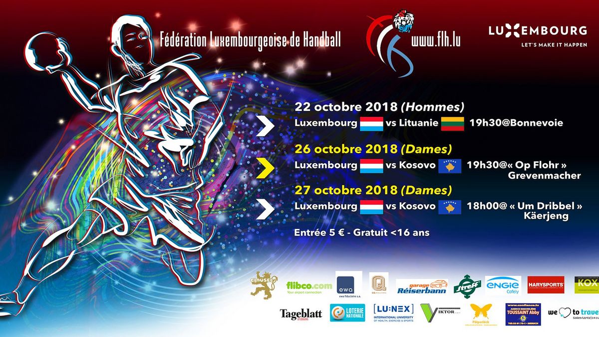 D'FLH invitéiert all Handballfrënn op d'Frëndschaftslännermatcher vun eisen Dammen an Hären.