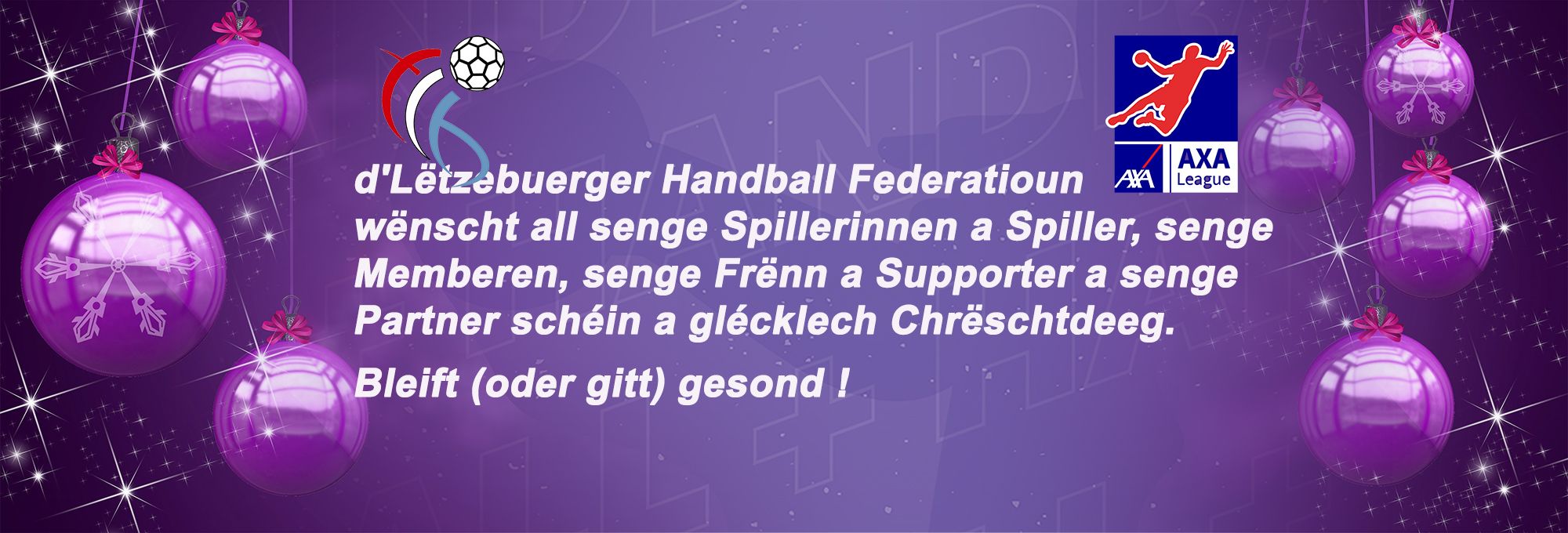 d’Lëtzebuerger Handball Federatioun wënscht all senge Spillerinnen a Spiller, senge Memberen, senge Frënn a Supporter a senge Partner schéin a glécklech Chrëschtdeeg.