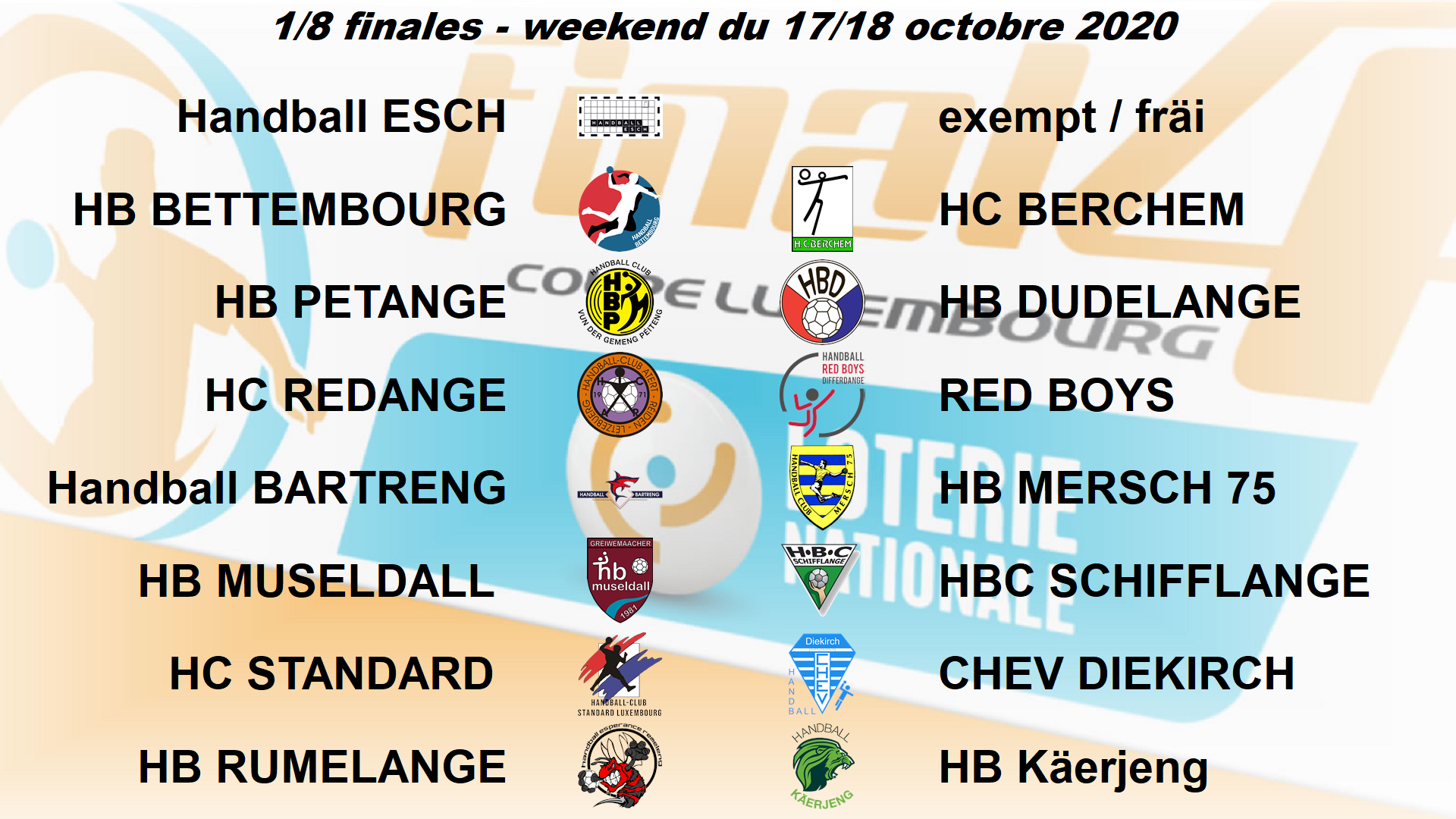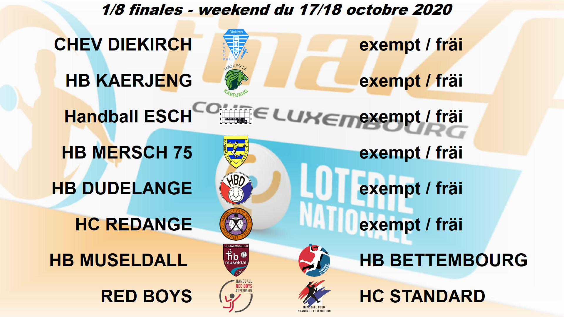 Tirage 1/8 Finallen Loterie Nationale Coupe de Luxembourg