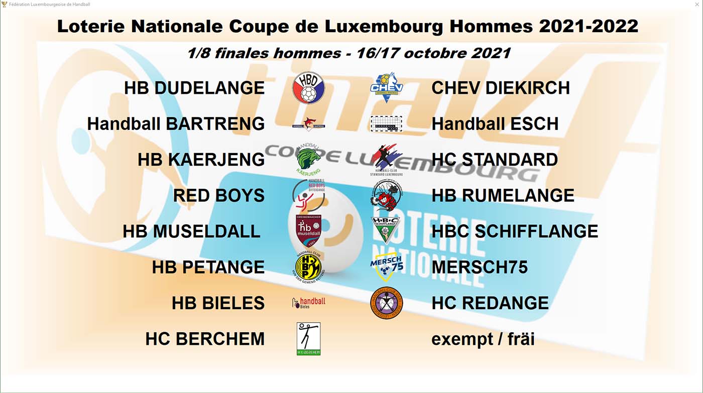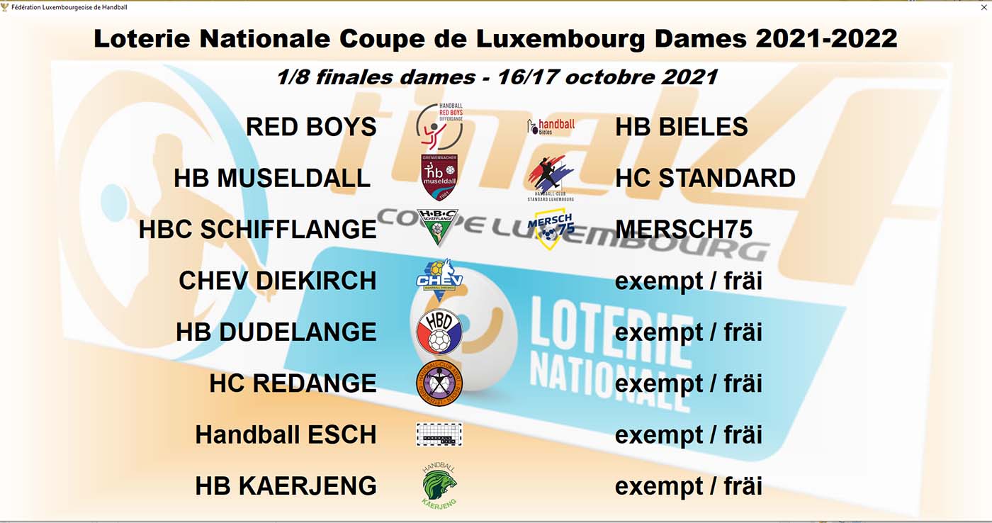 Spillfräi : Chev Diekirch, HB Dudelange, HC Atert Redange, Handball Esch, HB Käerjeng