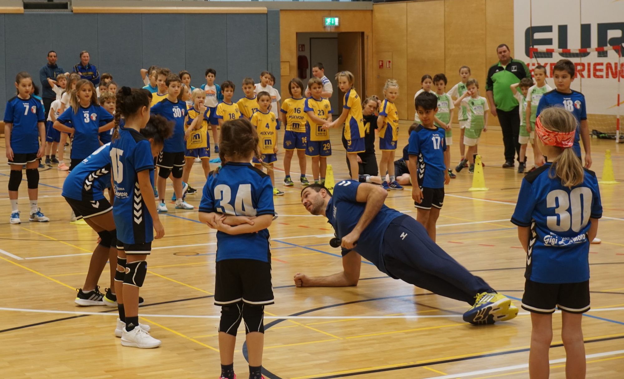 E Samschdeg schonn hat den EHF-Referent an 3fachen Champions League-Gewënner Carlos Prieto en theoreteschen- a praktesche Virtrag gehalen op der Trainerausbildung (Kid's Coach an C-Lizenz), déi e Freideg ugaangen ass. Dobäi war et him wichteg, dass d'Trainer sech bewosst gi wat fir eng wichteg sozial Roll si am Liewe vun de Kanner spillen. E Sonndeg war den 1. Mini-Handball vun den U11-Ekippen dës Saison zu Diddeléng. Bal 180 Kanner vun 12 Veräiner hu mat vill Freed an Engagement um Mini-Handball deelgeholl. De Carlos Prieto huet an deem Kader verschidden Übunge fir d'Kanner virgefouert.