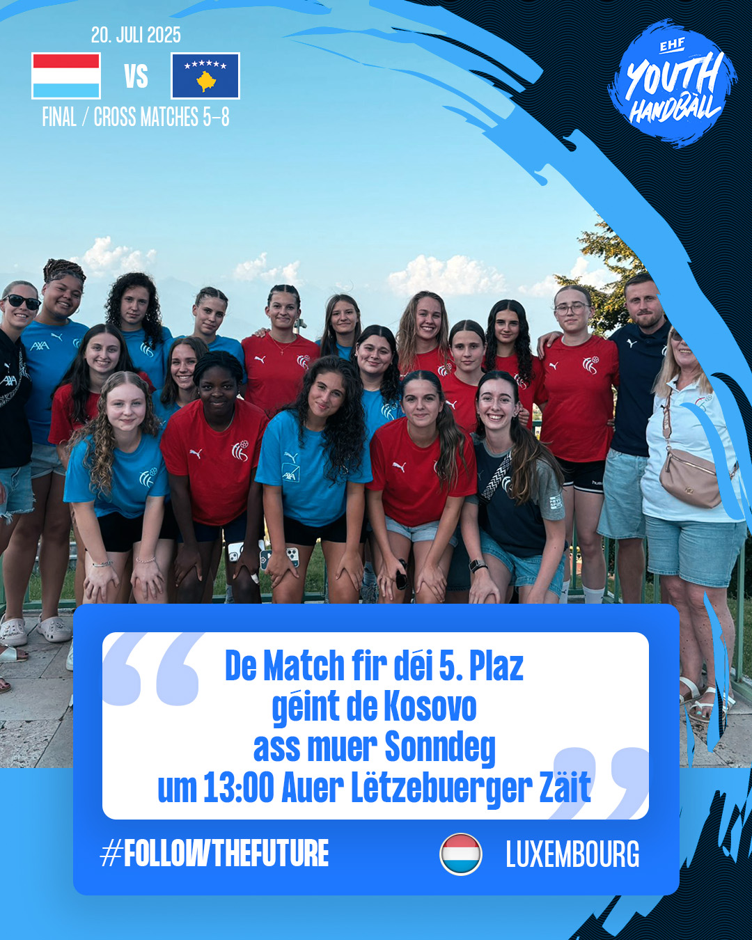 D'Finall fir déi 5. Plaz : Lëtzebuerg 🇱🇺 - 🇽🇰 Kosovo ass e Sonndeg 20. Juli um 1️⃣3️⃣:0️⃣0️⃣ Auer (lëtzebuerger Zäit)